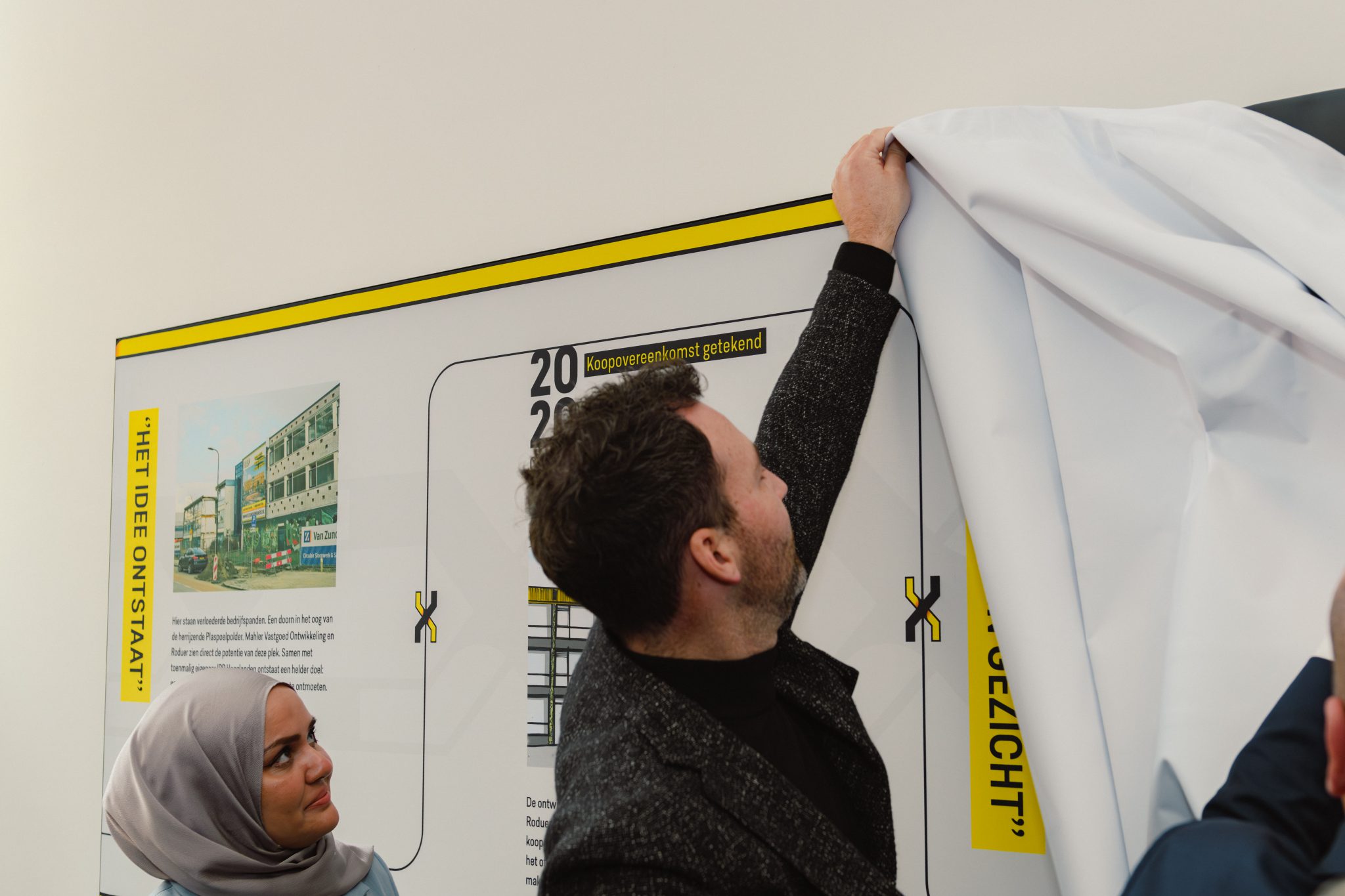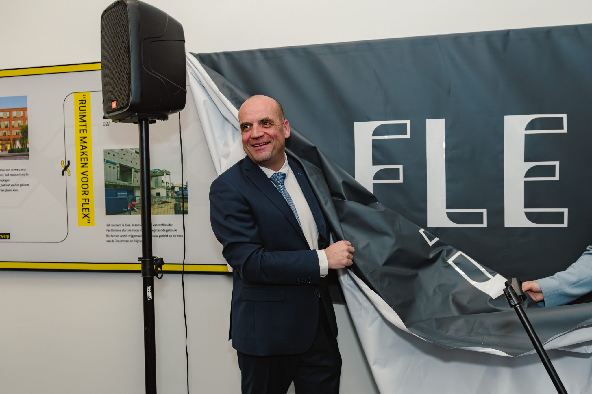 Tijdens de feestelijke bijeenkomst onthulde wethouder Financiƫn Werner van Damme samen met de ontwikkelaars een indrukwekkende, 10 meter lange fotogalerij in het atrium. Deze visuele tijdlijn brengt het bouwproces van FLEX tot leven: van de eerste schets tot de uiteindelijke realisatie.